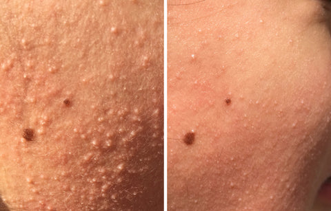 Milia relief with 1 KPS Signature Facial and at-home treatment with Renū Face Cream for 11 days.